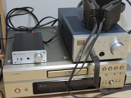 旧品と化したユニバーサルプレーヤーを引っ張り出して、すっかり使う機会がなくなったSTAXのヘッドフォンをリビングからお引っ越し。隣のデジタルアンプはDT990用。
