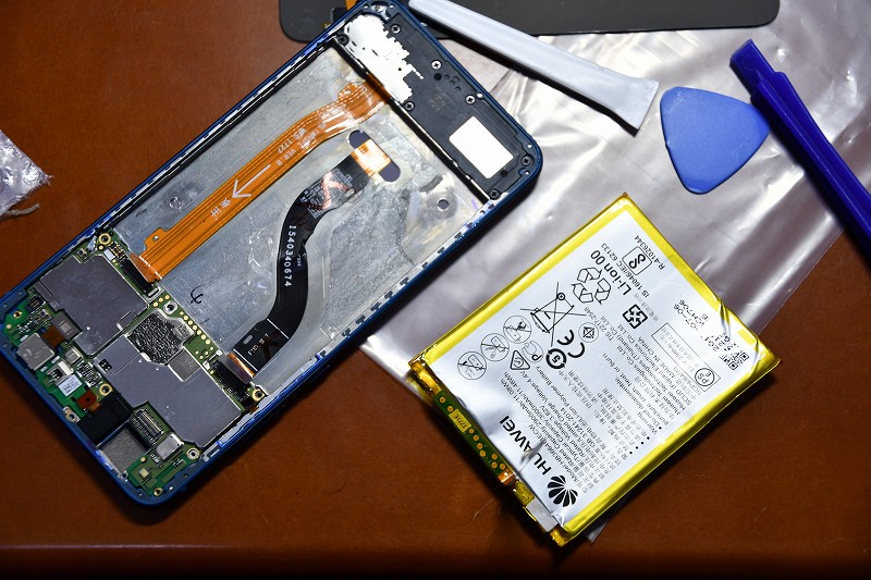 業を煮やしてカッターで…とかやってしまうと最悪。バッテリはもとより下を走っている通話ユニットとマザーボードの連絡線を切ってしまいかねません。