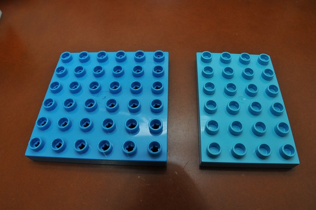 実はこの板ブロック、レゴ デュプロの方は2枚重ねるとブロック1個分の高さになるのですが、